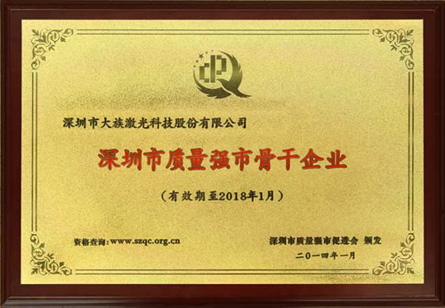 深圳市質量強市促進會組委會一致認定——大族激光榮獲2014年“深圳市質量強市骨干企業”榮譽稱號。