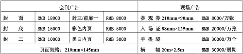 注明:參展企業若選擇雙開口展位加20%展位費用。會務費:參展代表每人1000元人民幣。(用于會議資料、午餐、紀念品等) >>>大會會刊與現場廣告 為配合展商在展期的宣傳,讓客戶了解展商并在會后溝通聯系,組委會將精心編印大會會刊,并為每位展商免費刊登200字內會刊廣告。