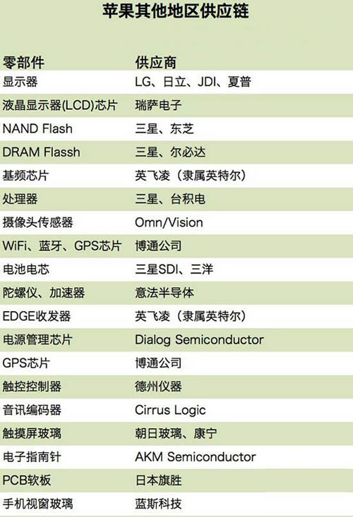 其實,當你拿到蘋果產品之前,它已經游歷了大半個地球了:其產品設計在美國,關鍵零部件的生產在日本,由韓國制造核心芯片和顯示屏,再有臺灣廠商供應另外一些零部件,然后在深圳富士康的工廠內組裝完成,最后賣到全球各地。 蘋果全球供應鏈 蘋果產品的成功,歸功于喬布斯天才的領導和顛覆的創新,但沒有一條強大供應鏈的保障,一切也只能是幻影。蘋果公司擁有一條極佳的供應鏈體系,自2007年以來,蘋果已連續6年成為Gartner評選的全球最佳供應鏈廠商。 其實,當你拿到蘋果產品之前,它已經游歷了大半個地球了:其產品設計在美國,關鍵零部件的生產在日本,由韓國制造核心芯片和顯示屏,再有臺灣廠商供應另外一些零部件,然后在深圳富士康的工廠內組裝完成,最后賣到全球各地。 “蘋果”里的中國制造 能夠進入蘋果的全球供應鏈,意味著將有機會從iPhone、iPad、iMac、iWatch等一系列明星產品的銷售中,獲得充足的訂單和穩定的收入,同時也是對企業自身產品品質、技術的認可。在蘋果產業鏈光環帶動下,A股市場也曾多次掀起“蘋果概念股”的旋風。但一切真的那么美嗎? 對蘋果利潤研究報告顯示,每部iPhone手機,蘋果公司占據其58.5%的利潤,韓國、日本以及其他國家公司占據了約10%的利潤,而中國大陸勞工成本只占了1.8%。同時在iPad的利潤分配中,中國企業所得的利潤占比也僅有2%。 對比上圖不難發現,中國供應商雖然眾多,卻鮮有核心部件,參與部分往往都在供應鏈最底層,做著技術含量最低的人力組裝工作,生產著可替代性最強的附屬配件。如iPhone5的電池成本僅有3美元;而作為附件的耳機,采購成本價也沒有超過10美元,至于手機組裝工序,每部手機的生產人力成本,只有8美元。 產品附加值較低,技術革新也跟不上蘋果的腳步,一些原本被納入蘋果供應鏈體系的中國公司,也面臨著出局的命運。如之前為蘋果提供觸摸屏配件的萊寶高科,因無法為蘋果提供更高要求的in-cell觸屏,將難保在蘋果產業鏈中的位置。 再如近期,屢陷專利專利訴訟的歌爾聲學,被尷尬的稱作:市值大卻只能做加工。正如陳大鵬所說:“核心芯片在國外,產品出口國外。表面上是一個市值很大的上市企業,但很大程度上做的卻是來料加工。” 作為國內電聲元器件龍頭的歌爾聲學,主要客戶包括蘋果、三星、索尼、微軟等國際一流企業。因與這些大客戶有著長期合作的關系,雖然保證了歌爾聲學業績的持續增長,但智能手機高低端領域布局已逐漸飽和,如沒有重大創新,將會面臨增長瓶頸。 目前,無論有多少中國企業擠入蘋果供應鏈,中國制造仍無法擺脫在世界產業鏈中的弱勢地位。當蘋果等國際一流企業不僅僅因為廉價而重視來自中國企業的產品和供應時,就是“中國制造”升級“中國創造”之時。(沙皮) 下面我們就來看下蘋果強大的全球供應鏈吧
