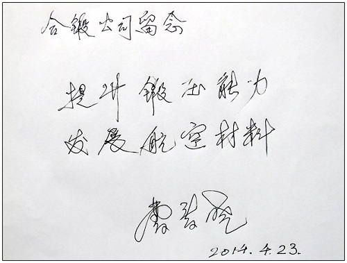 會議期間,公司嚴建文董事長陪同中國科學院曹春曉院士參觀了合鍛展臺,并向曹春曉院士介紹了合鍛公司在航空航天領域做出的諸多成績,曹春曉院士聽聞欣然題字寄語合鍛:提升鍛壓能力,發展航空材料。 合鍛公司一直致力于航空航天、軍工領域各種成形裝備的研發、設計和制造,多次承擔了省部級專項、國家“863計劃”、國家“躍升計劃”、國家科技重大專項等科研項目。自主研發的YH10-40000KN等溫鍛造液壓機、YH12-60000KN快鍛液壓機、YH66-50000KN內高壓成型液壓機、YH28-2000/3000噸雙動厚板拉伸液壓機、HHP24-12000/15000KN充液拉伸液壓機等大型數控成形裝備,成功地應用于國防航天航空領域。公司的機床數字化設計技術、自動化控制技術、機電液一體化技術、伺服控制技術、大型超大型部件加工制造技術、智能成套設備解決方案及安裝調試技術等達到國內領先水平,部分達到國際先進水平。 據悉,中國鍛壓協會航空材料成形委員會于2001年3月在北京成立。本屆會議是由中國鍛壓協會航空材料成形委員會組織的有國內外多家企業參與的四年一屆的盛會,與會單位包括飛機和發動機制造公司、金屬材料公司、鍛壓設備公司、鍛造公司、工業燃氣輪機公司、相關高等院校和科研院所等。會議旨在為鍛件的用戶提供滿足其設計要求的低成本優質鍛件,提升航空鍛造產業的綜合能力,以便更好地為飛機制造公司、發動機制造公司等相關企業提供服務。 |