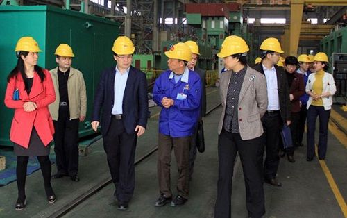 合鍛公司常務副總經理李安應向汪義達副司長匯報了合鍛近年來的生產經營情況,并陪同來賓參觀了大型液壓機、機械壓力機組裝調試車間。。