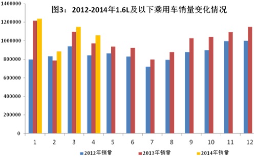 1. 1.6升及以下排量乘用車市場分額下降1.65% 4月,1.6升及以下乘用車銷售105.73萬輛,占乘用車銷售市場的65.71%,比上年同期下降1.65個百分點;銷量同比增長8.89%。 1~4月,1.6升及以下乘用車銷售432.32萬輛,占乘用車銷售市場的66.92%,比上年同期下降2.55個百分點;銷量同比增長6.12%。