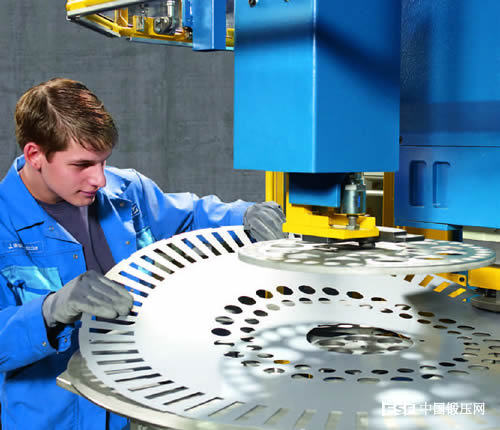 借助可控模具,可以僅通過一個夾持操作就完成定子和轉子的沖槽。與常規兩套模具組的生產工藝相比,這種方法不再需要換裝模具和再次載入轉子料片!皩r間的節省不僅可降低零部件的成本,同時也能最大程度地發揮出設備的效能,”舒勒執行總裁Johannes Linden 說道。