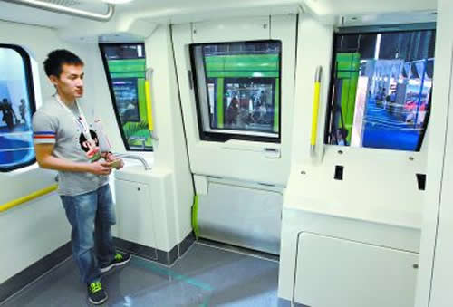 6月17日,中國(guó)首列無(wú)人駕駛地鐵列車(chē)在上海新國(guó)際博覽中心展出。當(dāng)日,中國(guó)首列無(wú)人駕駛地鐵列車(chē)亮相“2014中國(guó)國(guó)際軌道交通展”。據(jù)悉,這輛無(wú)人駕駛地鐵列車(chē)為3節(jié)編組,最大載客約1500人,外觀與普通地鐵相似,不設(shè)駕駛室。這種新型車(chē)將無(wú)需司機(jī)和乘務(wù)人員介入,可實(shí)現(xiàn)列車(chē)自動(dòng)喚醒、自動(dòng)發(fā)車(chē)離站、上下坡行駛、到站精準(zhǔn)停車(chē)、自動(dòng)開(kāi)閉車(chē)門(mén)等操作。 |
