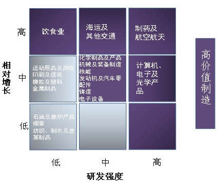 一、英國“高價值制造”戰略 制造業占英國增加值總額的10%、出口總額的54%,集聚了四分之三的研發投入,直接就業人口達250萬。其航空航天產業的國際排名僅次于美國,世界六大制藥企業中有兩家企業總部位于英國。 同時,英國制造業也面臨著全球化、國際金融危機、過度依賴服務業等問題帶來的諸多挑戰。為此,自2008年起,英國政府就推出“高價值制造”戰略,希望鼓勵英國企業在本土生產更多世界級的高附加值產品,以加大制造業在促進英國經濟增長中的作用。目前,“高價值制造”戰略已進行到第二期(2012-1015年)。 所謂“高價值制造”,是指應用先進的技術和專業知識,以創造能為英國帶來持續增長和高經濟價值潛力的產品、生產過程和相關服務。