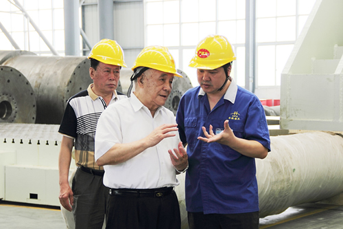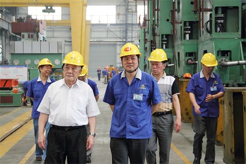 嚴(yán)建文董事長(zhǎng)、李安應(yīng)常務(wù)副總經(jīng)理陪同何光遠(yuǎn)部長(zhǎng)(左2)參觀了合鍛工業(yè)園 何光遠(yuǎn)部長(zhǎng)是機(jī)械工業(yè)部的老領(lǐng)導(dǎo),很長(zhǎng)一段時(shí)間內(nèi)主管中國(guó)的機(jī)械工業(yè),為中國(guó)機(jī)械工業(yè)的發(fā)展做出了重要貢獻(xiàn)。在合鍛重型裝配車間,何老饒有興趣地參觀了正在組裝的大型液壓機(jī)生產(chǎn)線。嚴(yán)建文董事長(zhǎng)介紹說,這是合鍛自主研發(fā)的世界最大噸位的15000噸雙動(dòng)充液拉深液壓機(jī),具有主機(jī)精度高、控制精度高、響應(yīng)速度快等特點(diǎn),對(duì)于提高新型運(yùn)載火箭、飛行器、戰(zhàn)略武器裝備的性能要求,對(duì)打破國(guó)外技術(shù)封鎖,提高國(guó)家技術(shù)競(jìng)爭(zhēng)力具有重要意義。