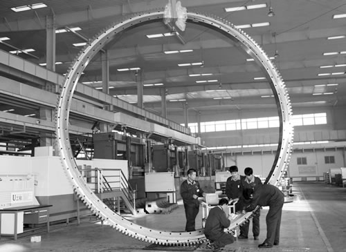 6月27日,為世界最大噸位取料機配套的外徑11米軸承在瓦軸集團研制成功順利下線,通過了國外客戶驗收,這是世界上首次將推力球軸承應用在大型堆取料機上。 2013年11月,在與國內外眾多軸承企業同臺競爭中,瓦軸成功承攬了為國外客戶14400噸/小時取料機研制配套軸承的訂單。 14400噸/小時取料機是目前世界上最大噸位的取料機,在大軸承的研發制造中,在沒有現成經驗的情況下,瓦軸集團完全依靠自己的技術力量和制造能力,實現了許多創新和突破,在中國軸承行業率先掌握了超大型軸承的核心技術,創造了12項中國第一:第一套國內最大尺寸推力球軸承;采用國際領先、國內首創的密封結構,實現軸承工作中的有效排削能力等。(兵工廠) |