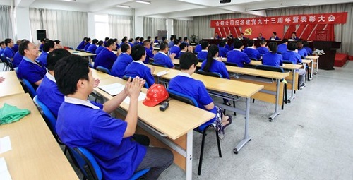 7月1日下午,合肥合鍛機床股份有限公司紀念中國共產黨成立93周年暨“七一”表彰大會隆重舉行,合鍛公司黨委書記、常務副總經理李安應、副總經理韓曉風、副總經理王玉山、黨委副書記儲蓉等黨委委員以及各支部書記、黨員代表和受表彰“優秀黨務工作者”、“優秀共產黨員”等近百余人參加了此次大會。會議由公司黨委委員、副總經理韓曉風主持。