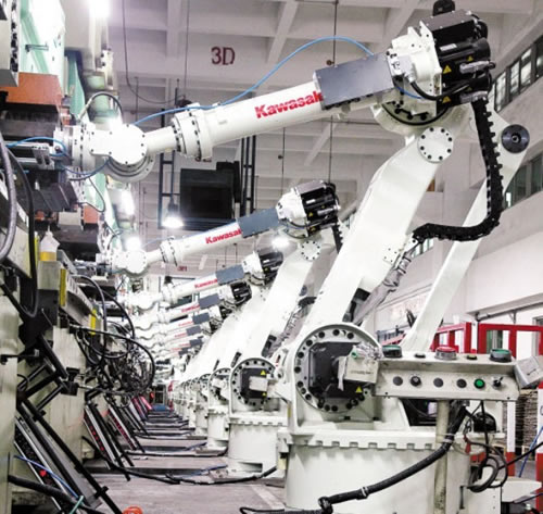大范圍應用工業機器人,推動技術紅利替代人口紅利 “世界工廠”珠三角的車間,正在鬧“革命”:搬運工、燒焊工、噴涂工等工種,正迅速被“機器人”取代。與此同時,珠三角機器人工業也發展迅速,走在全國前列。據不完全統計,相關產業產值已近千億元。廣東省委黨校教授陳鴻宇28日告訴羊城晚報記者,珠三角傳統制造業與智能化、信息化融合,是轉型升級的一個大機遇。 在這次“車間革命”中,東莞最積極,將“用機器換工人”視為轉型升級重要抓手。今年6月25日,東莞便出臺新政加大扶持力度。東莞市委書記徐建華表示,“機器換人”推動技術紅利替代人口紅利,對培育新的經濟增長點、加快產業轉型升級具有重大意義。 整個珠三角,越來越多企業開始將機器人應用于碼垛、搬運、裝卸、投料、裝配、分揀、焊接、噴釉、研磨、拋光等崗位。深圳機器人協會秘書長畢亞雷告訴記者,珠三角工業機器人年增速已達30%,有些行業達60%。 今年以來,廣州、佛山、中山等地也相繼出臺政策,推進“機器人換工人”。珠三角不僅更廣泛地使用機器人,還要打造機器人或智能裝備產業基地,已列入珠三角多地未來發展議程。 廣州提出到2020年打造兩三個工業機器人產業園,形成超千億元的智能裝備產業集群;2013年深圳機器人和自動化產業的產值超過了200億元,提出要以機器人、可穿戴設備等為重點,建設國內一流智能裝備產業基地;東莞則力爭2016年全市工業機器人智能裝備產業產值達到350億元,到2020年達700億元;佛山順德借全國唯一“裝備工業兩化深度融合暨智能制造試點”的東風,規劃明年智能制造產業規模超千億元。 讓“世界工廠”擺脫依賴廉價勞動力的發展模式,“這無疑是意義重大的事情。”陳鴻宇認為,從生產產品到生產裝備,這是轉型升級的關鍵點。“讓智能化、信息化與珠三角傳統制造業融合,是轉型升級的重大契機和機遇。” 兩名工人站在數控沖床旁,一起深深地彎下腰,合力抬起重達15公斤、面積約2平方米的鐵板,放到數控沖床上,待完成打孔、折彎等工序后,又合力抬下沖床。 這樣簡單、重復、枯燥的動作,在工期緊張時,兩名工人每分鐘得彎腰5次,一小時需彎腰300次,一天8小時累計有2400次。 在位于東莞鳳崗的嘉利集團五金沖壓車間,上述景象已經看不到了。現在,這一切都由“機器人”完成了。 自2007年起,嘉利集團先后引進了200臺機器人,其中120臺已投入生產,用于搬運、弧焊、激光燒焊等。這改變了工廠車間的制造模式,工人由原約550人減至約180人,一年節約人力成本達1300多萬元。 在東莞及珠三角其他地區,越來越多的企業應用工業機器人。“機器換人”也成了政府項目,廣州、東莞、順德、中山等政府近期就紛紛出臺政策扶持。“所謂‘機器換人’,就是以自動化、智能化的設備代替人工提升制造水平,推動技術紅利替代人口紅利,是經濟繼續保持增長的動力之源。”東莞市經信局有關負責人如是解釋機器換人的意義。 除了“用”機器人,珠三角多地還紛紛布局“造”機器人。廣州、東莞、珠海已經籌劃或啟動機器人制造基地,深圳、佛山則把智能裝備作為自己的新興支柱產業。未來幾年,珠三角以機器人為代表的智能裝備產業規模將達數千億元。 1、“解放的手” 原來人工生產線平均每臺沖床需用人1.41個,現機器人生產線平均每臺沖床只需用人0.38個。 在嘉利集團五金沖壓車間里,擺放著大小不一的“機器人”,10公斤、20公斤、50公斤、130公斤不等,自動地完成數控沖床上料、傳輸、下機。 “我們廠機器人配數控沖床已有6條沖壓生產線,通過調試聯機、編程設計,機器人能自動完成生產不同工序的產品。”嘉利集團副總經理何啟文驕傲地說道。 記者在嘉利集團車間看到,除了用來運輸的機器人,還有用來弧焊、激光燒焊、攻牙的機器人。這些工業機器人的應用,改變了車間里的勞動力結構。“原來運輸材料的普工,基本上沒有了。”何啟文說,“原來焊接需找熟練師傅,但一直比較難請到,而應用焊接機器人,現在只要招一個普工,經過簡單培訓,就可以上崗了。” 據嘉利集團有關部門核算統計,工廠五金沖壓車間原有約550人,現有約180人,減少370人,占比67%。原來人工生產線平均每臺沖床需用人1.41個,現機器人生產線平均每臺沖床只需用人0.38個。 美亞廚具有限公司是全球第二大的廚具生產商,美亞(肇慶)廚具總經理胡偉賓對記者說,企業從5年前開始就已經引入全自動機械臂生產線,取代了過去由人工完成的鍛壓、淬火、釬焊、打磨等高危險性工序,工人由過去3000多人減少到1000多人。 廣東鳳鋁鋁業有限公司常務副總經理劉志明對記者說,早在2000年,鳳鋁引進了一條采用全數控自動化操作生產線,產量是翻了4-5倍,但操作人員只有原來的三分之一。 2、被迫“革命” “你說為啥引進機器人?這都是被逼的。機器人不用買五險一金,不用擔心工傷,好管理,多好!” 嘉利集團是一家港資企業,1985年在東莞設廠,從一間“三來一補”企業發展成香港上市公司。從最開始基本靠人力的“民工時代”,到熟練工搭檔半自動化的“技工時代”,再到如今智能化的“機器人時代”,它見證了珠三角制造業發展的全過程。 近幾年,不斷有客戶建議何啟文,把廠搬到越南或馬來西亞,但權衡再三他還是選擇留守。“主要是東莞這邊的產業配套優勢,是其他地方所不