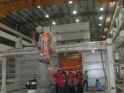 時值高溫酷暑,廣州更是酷熱難耐,安裝現場設施簡陋條件艱苦,就算站在工作現場不動也會渾身濕透。在開始安裝后,因廠房頂板阻擋吊車吊臂必須拆除,裝配現場完全曝露在太陽的照射之下,產品表面溫度達到40°C以上。為了按時完成安裝計劃,試制中心安裝人員強忍炎熱,加班加點,甚至中暑身體不適,仍然堅守在工作現場。經過20天的奮戰,試制中心終于順利的完成了現場的安裝試車,讓用戶贊賞不已,充分展示了徐鍛的實力。 DP39-600HE壓力機在用戶現場順利完成安裝試車,不僅充分展示了徐鍛的產品裝配實力和整體制造能力,而且提高了徐鍛公司在該地區的知名度。經了解,該地區不少廠家也通過該產品的安裝調試對徐鍛集團有了新的認識,并贊譽頗高。該型產品必將成為徐鍛新的經濟增長點!(兵工廠) |