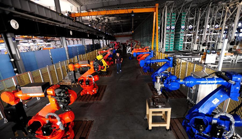 隸屬于中國科學(xué)院的沈陽新松機器人自動化股份有限公司是國內(nèi)最大的機器人產(chǎn)業(yè)化基地之一。即將投產(chǎn)生產(chǎn)線占地15000多平方米,集成了移動機器人、堆垛機器人、裝配機器人、檢測機器人等系列產(chǎn)品,可實現(xiàn)物料自動搬運、柔性物料傳輸、零部件自動清洗、自動化裝配等功能。 據(jù)介紹,與人工制造相比,數(shù)字化智能生產(chǎn)線不僅會極大地提升產(chǎn)品質(zhì)量,生產(chǎn)效率也會提升5至10倍。(兵工廠) |