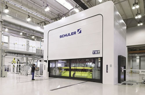 與常規(guī)機(jī)器有相同有用空間的情況下,其外部尺寸更加緊湊,因而壓力機(jī)占用空間更小,也適合天花板較低的車間。雖然驅(qū)動裝置已經(jīng)集成在壓力機(jī)底座中,但是基礎(chǔ)尺寸和地下空間要求并沒有增加,服務(wù)和維護(hù)的便利性仍然很好。這種緊湊的結(jié)構(gòu)也意味著整個壓力機(jī)可以使用一個獨立的隔音罩隔離。事實上驅(qū)動器位于地基中,已經(jīng)使聲音排放量遠(yuǎn)低于傳統(tǒng)設(shè)計。獨立的隔音罩更徹底地減少了過程噪音以及結(jié)構(gòu)所帶來的聲音傳輸,車間天花板的反射被消除。空間寬敞的窗口為操作人員提供了一個觀察成形過程的完美視野。與常規(guī)壓力機(jī)相比,噪音排放量減少約15分貝-相當(dāng)于為員工減少了一半的噪音污染。