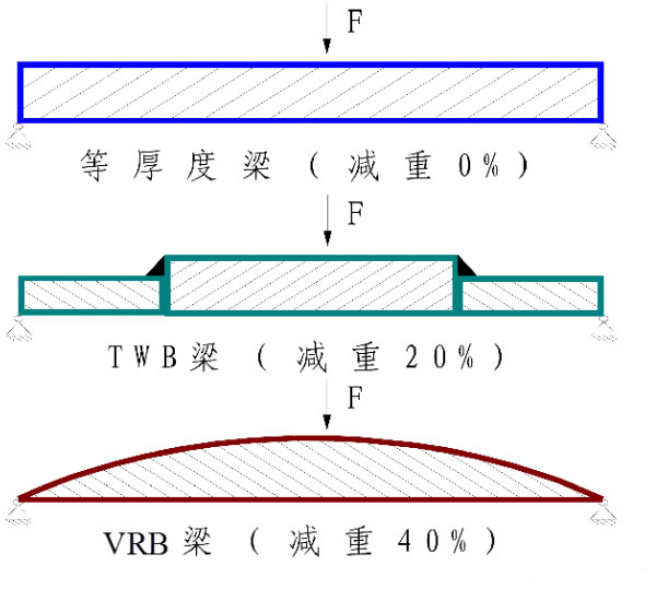 TWB與VRB的輕量化效果比較 在零件生產和制作工藝方面,工藝操作與普通的等厚度板料的成形基本相同,可連續性生產,生產效率高。而且過渡區光滑連接,比拼焊板厚度突變的模具設計簡單。 在成本方面,相比多條焊縫的TWB板,VRB板具有明顯的競爭優勢。 當然,VRB板也存在一定的不足: 1)與激光拼焊板相比,由于VRB技術的板料僅是單一材料牌號,因而零件形狀拼接時靈活性不足。 2)由于是由整塊板料軋制而成,也不能將不同材質的鋼板拼接到一起。 3)考慮到材料的利用率,對于中空的零件,VRB板料的材料利用率比TWB將大為降低。因此,類似車身側圍這樣的中空零件,變厚板的材料利用率要比激光拼焊板低,而對于長形的實心零件,變厚板技術將會是最佳選擇。 AM:VRB技術有很多優點,其可以應用到汽車的哪些部件上? 高永生:變厚板技術特別適用于長形的實心零件,如門檻、縱梁等。經過對國產某B級轎車的零件梳理,發現至少有近20個零件可以應用變厚板技術設計和制作,包括前后地板縱梁、B柱和門檻加強板、頂蓋各個橫梁、儀表盤支架、中通道加強板等等,統計下來僅零件重量就有75kg之多。