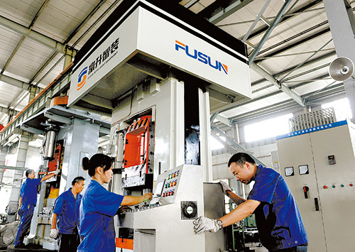 10月8日,湖北富升鍛壓機械有限公司技術人員調試智能電磁螺旋壓力機。這是該公司今年研制出來的新產品,是目前世界上技術最先進的壓力機,也是國內電磁技術在螺旋壓力機上的首次運用。
