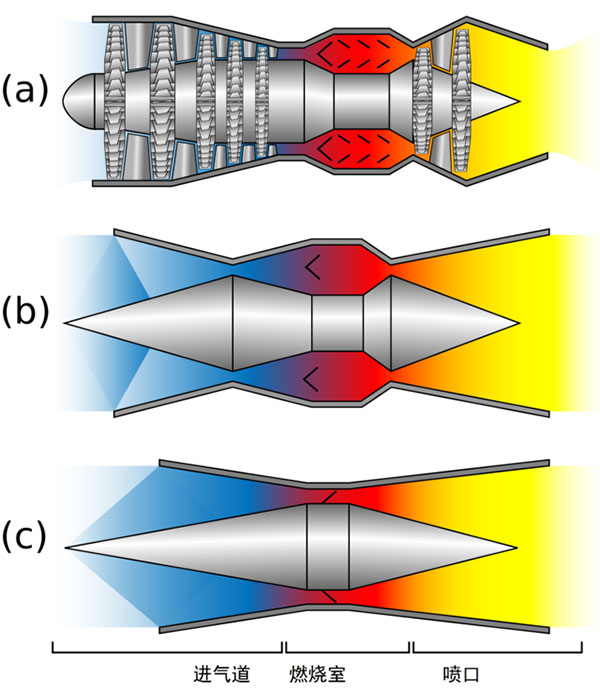 超燃沖壓發動機技術,被美國確定為未來將改變戰爭形態的重點技術之一,能夠搭上超燃沖壓發動機發展的快車道甚至關乎我國國運。而國防科大則完成了這一歷史性突破。 一、沖壓發動機原理 航空發動機目前主要分為渦輪風扇發動機、渦噴發動機、螺旋槳發動機等,但這些發動機都普遍無法達到較高的飛行速度,最快只能飛到2馬赫左右。原因是這些飛機都是利用渦輪/風扇旋轉帶動氣流反推,當渦輪(用于壓氣機)/風扇轉速到一定程度后,強大的離心力將導致其結構斷裂,無法繼續,但這種發動機在低速時性能相當好。 在思考怎樣將發動機繼續提速時,科學家們發現,當空氣速度達到2馬赫以上時,如果取消發動力內部的風扇渦輪等設備,讓氣流直接進入發動機。然后通過調整發動機的構造(一般是縮小發動機的直徑),發動機內部氣流的壓強就會自動上升,節省了壓氣機壓氣環節。一般只要空氣降到音速之下就可以進入燃燒室和燃料混合點燃使用了,點燃后的空氣壓力由噴口噴出,產生強大的反推力,推動飛機或者導彈向前飛機,這就是所謂的沖壓發動機原理。