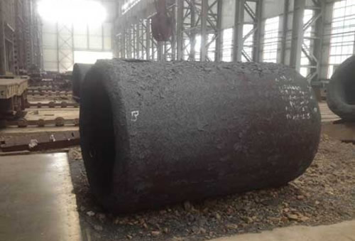 圖為熱處理完畢出爐的加氫筒體 自山東帝維加氫項目筒體在水壓機車間投料生產以來,其鍛造和鍛后熱處理生產工作于近期進展順利。目前,水壓機車間已完成該項目42支筒體的出產。