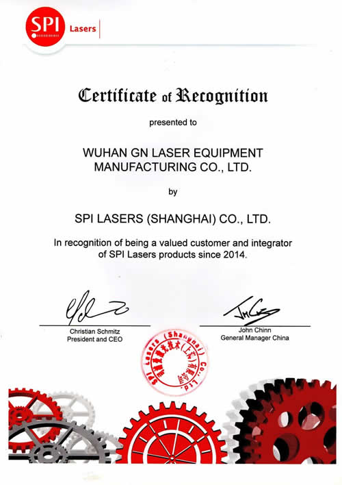 武漢高能激光為了進一步持續對光纖激光切割機的發展,與德國通快旗下的SPI達成深度合作,成為SPI在國內最大的合作伙伴,并是國內首家也是唯一一家具備SPI售后服務資質,持有SPI授權售后上崗證書的企業。