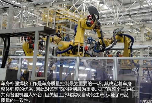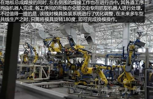 經歷道道工序后,焊接完成的白車身將會進行質量檢驗,合格的白車身會通過空中走廊進入涂裝車間,進入下一步的工藝環節。如此高自動化的焊裝車間是不是很神奇呢?FANUC機器人為你實現! |
