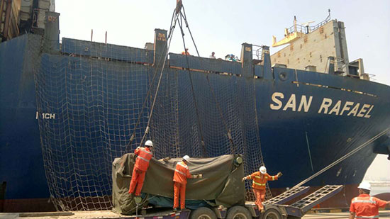圖6:羅馬尼亞3150噸液壓機和30噸數控操作機到船邊上船了
