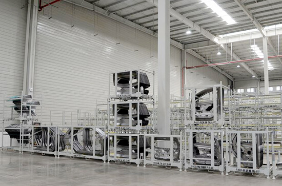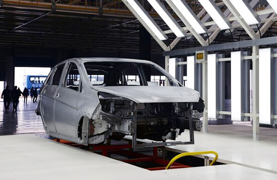 焊接好的車身將被送進涂裝車間,但由于本次參觀時間有限我們并沒有參觀這座車間,據了解該車間內建設有一條機械化自動流水生產線,采用水性漆3C1B噴涂工藝,排放也符合國家標準。