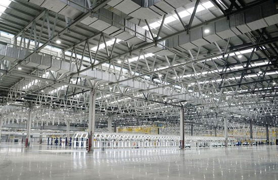 最后我們來到的是最重要的總裝車間,這座建筑面積99076平方米的車間是目前江西省最大的單體廠房。但是目前該車間僅使用了不足一半的面積,所以看起來非常空曠。由于時間的關系我們僅針對該車間當中的合車工位進行了參觀。