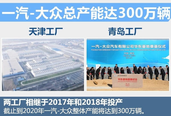 一汽大眾此前公布的“2020戰略”中,到2020年一汽-大眾整體產能將達到300萬輛。目前長春、成都、佛山三大生產基地也在進行項目擴建,建設完成后一汽-大眾的總產能將有望達到210萬輛/年。隨著一汽-大眾青島工廠和天津工廠分別將于2017年和2018年實現建成投產,使一汽-大眾形成覆蓋東北、西南、華北、華南和華東的全國性戰略布局,向“2020戰略”目標的實現又邁進一步。