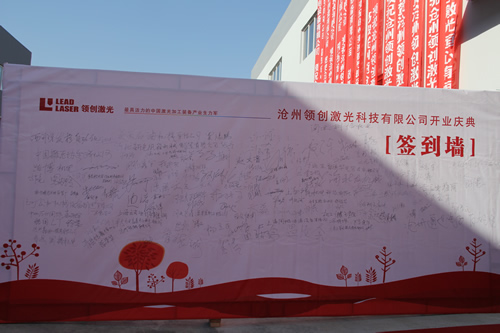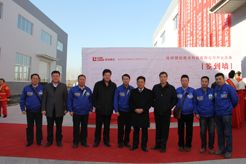 2015年1月19日,滄州領創激光科技有限公司隆重開業,正式揭牌成立。來自滄州市運河區政府的各級領導和直屬部門、行業協會、新聞媒體以及供應商和用戶等近200余名嘉賓出席了滄州領創激光科技有限公司的開業慶典活動,共同見證了這一重要時刻!百余件祝賀的條幅、百余盆爭艷的鮮花,騰躍的舞獅和歡樂的鞭炮將滄州領創激光開業氛圍推向高潮。