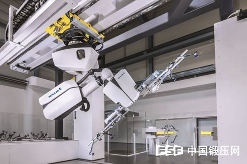 2、德國舒勒集團——第四代“橫桿機器人4.0” 該機器人的設計源自于六軸工業機器人,而舒勒的工程師們又在此基礎上增添了兩個軸,分別控制機械臂和水平驅動。配有雙電機的改良型驅動系統以及全新的傳動裝置使得橫桿機器人的速度得到顯著地提升、重量大幅地減輕,同時,“機械手”的靈活性也因此提升了約20%。而最大載荷(包括端拾器在內)保持不變,仍為90kg。得益于集成了能源回收裝置的創新型能源管理系統,機器人的能源效率也提升了20%。這樣,其操縱性、靈活性以及產量都獲得了顯著的提升!皺M桿機器人4.0每分鐘最多可輸送15個零部件。