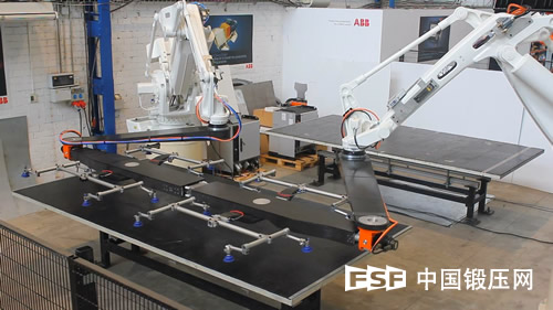 3、ABB集團——高速沖壓線的快速和柔性零件傳送解決方案Twin Robot Xbar 近二十年來,ABB一直在研制基于機器人的壓機自動化裝置解決方案。其最近創新TRX,是一種快速靈活的零部件傳送轉移系統,大型零件在串聯壓機線上的輸出速度達每分鐘16件。系統同樣可以適用于現有沖壓線的改造,相較于其它系統需要在立柱和滑塊間預留額外空間而言優勢明顯。TRX是由一個控制器系統控制,共有10條軸:兩個四軸的機器人,外加橫桿中的額外兩根軸。這兩個機器人是分配總能量、減少慣性的最佳方法。