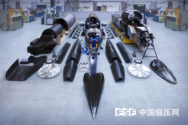 車身: Bloodhound周身采用了5種不同類型的碳纖維材料和兩種樹脂材料,總設計、制造過程超過10000小時。同時,設計師還在碳纖維材料的夾層中填充了3種鋁制蜂窩結構來提供額外的強度支持,車體最厚的部分將由13層高科技材料組成,但厚度僅為24mm。 另外,Bloodhound還擁有采用雙層丙烯酸材料粘合而成的特質擋風玻璃,這種座艙玻璃厚度為25mm,甚至超過了一般戰斗機的制造標準,即使在1448公里/時的速度下遭受一個1公斤重量的物體碰撞也不會損壞。車輪使用高級鈦制成。