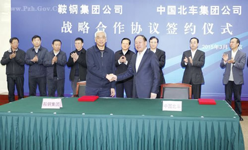 鞍鋼集團與中國北車就建立跨行業的戰略合作伙伴關系簽署協議,以促進雙方上下游產業鏈的結合與發展,形成軌道交通運輸裝備制造企業與鋼鐵企業的強強聯合,實現優勢互補與合作共贏。 中國北車歷經多年技術引進、消化吸收再創新,擁有著雄厚的技術創新能力和集成創造能力,形成了軌道交通、通用機電、現代服務、戰略新興四大業務板塊,是國內規模最大、實力最強的軌道交通裝備制造企業之一。鞍鋼集團和中國北車合作源遠流長,鞍鋼鋼材廣泛應用于中國北車各型號貨車、動車和機車。自2000年以來,中國北車在鞍鋼采購鋼材的數量逐年增加,到目前總量超過200萬噸,中國北車80%左右的耐腐蝕結構鋼都由鞍鋼供應。 為進一步發揮各自優勢,共同提高核心競爭力,鞍鋼集團與中國北車將在原有合作基礎上建立起跨行業的戰略合作伙伴關系,鞍鋼與北車雙方互為大客戶,優先選用對方產品和服務,有效利用雙方優勢資源,促進共贏和共同發展。 |