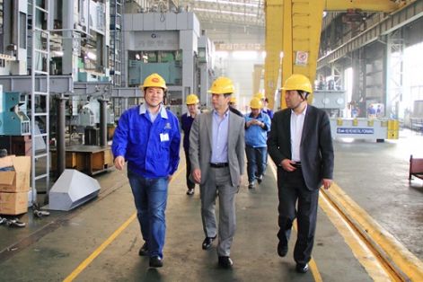4月1日下午,三菱重工業(yè)株式會社執(zhí)行董事、中國總代表巖崎啓一郎訪問合肥合鍛機床股份有限公司。合鍛公司董事長嚴建文、副總經(jīng)理王玉山、董事長助理李輝等陪同巖崎啓一郎參觀了公司重型裝配車間、鍛壓裝備總裝生產(chǎn)線,并就企業(yè)生產(chǎn)規(guī)模、技術創(chuàng)新等情況作了介紹。