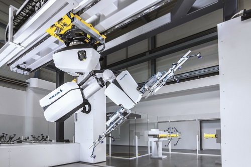 舒勒全新橫桿機器人 4.0 用于在沖壓線中將零部件從一個工位輸送到下一個工位:它能在模具中同時取出 4 個零部件,必要時會調整零部件方向,然后再將它們直接放置在下一個模具中。常規機械式沖壓線以及液壓式沖壓線通過這種易于編程的機器人能夠輕松實現自動化,它是上料、卸料以及現有生產線改造的理想之選。