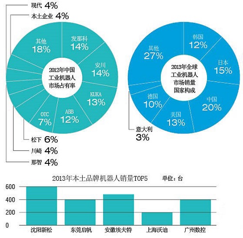 2013年,中國市場共銷售工業機器人近3.7萬臺,超過日本成為全球第一大工業機器人市場。但是,市場并未被本土企業所占有。