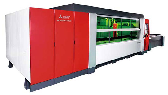 三菱電機于2015年6月11日推出了二維光纖激光加工機“ML3015eX-F40”(右圖),可滿足從薄板到厚板的板金加工需求。新產品是在CO2激光加工機主力產品“eX”系列的基礎上,配備了輸出功率為4kW的纖維激光振蕩器,縮短了加工時間,并提高了節能性和操作性。