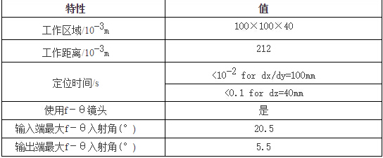 圖5 激光掃描焊接系統(帶氣刀) 表2 激光掃描焊系統特性