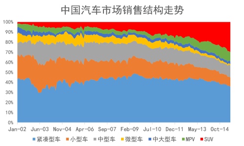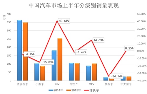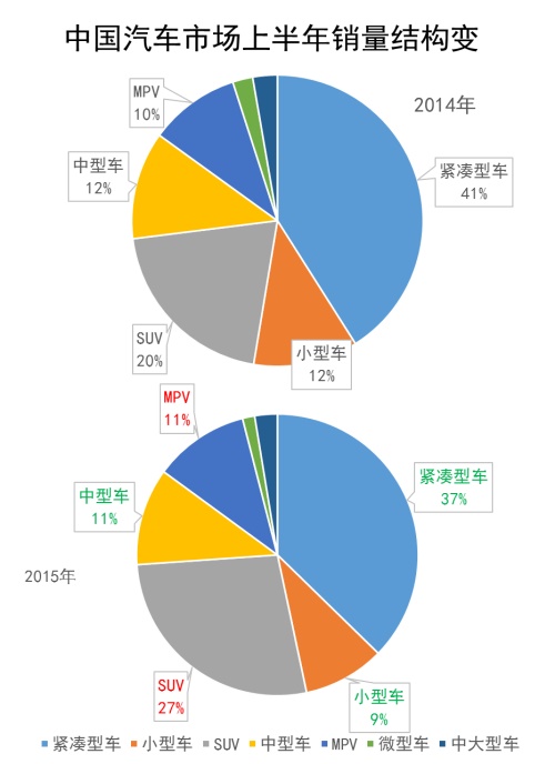首先,除了緊湊型車型、大中型車型上漲外,其他類型車輛均告下跌,其中SUV銷量同比下跌24%、小型車同比下跌13%、中型車同別下跌30%。