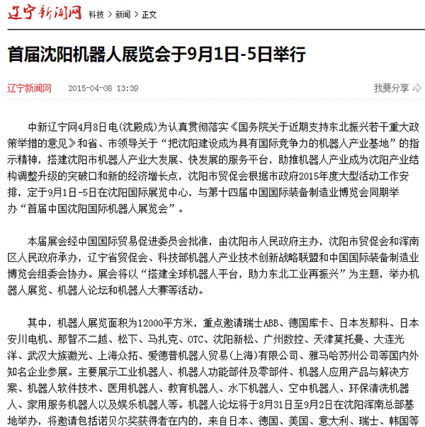 據統計,有幾十家國內主流媒體對2015中國制博會和首屆“中國沈陽國際機器人展”進行報道。同時,展會合作的上百家行業專業媒體也在面向專業領域為制博會造勢。相信本屆制博會將吸引前所未有的關注。您,還在等什么?