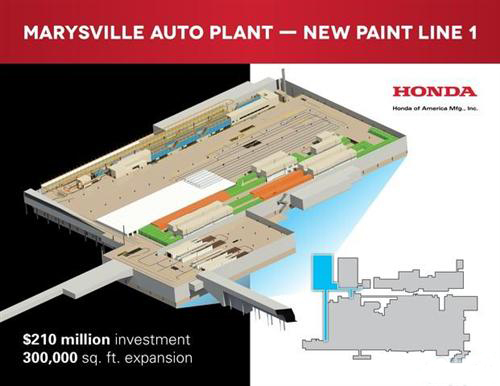 綜合外電報道,本田汽車計劃斥資2.1億美元在美國俄亥俄州馬里斯維爾(Marysville)工廠新增一條現代化涂裝生產線,以減少環境污染并提升產品質量。