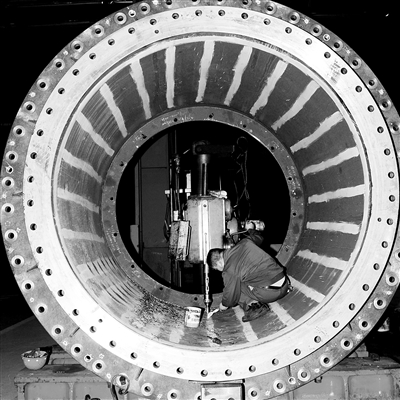 中信重工機械股份有限公司近日收購唐山開誠電控設備集團有限公司80%股權,從此獲得機器人、自動化、傳動、傳感器等產業的互補,借助智能裝備產業,開始建立轉型發展的新優勢。這被業內認為是中信重工不斷轉型發展的縮影。 經歷60年的發展,中信重工已從“一五”時期的洛陽礦山機器廠,發展成為世界最大的礦業裝備和水泥裝備制造商。2012年,國內最先進的特大型球磨機在中信重工試車成功。圖為工人在位于河南省洛陽市的中信重工磨機生產車間里工作。