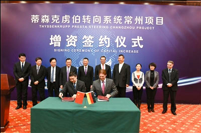 導讀:針對國內汽車市場的高速增長,蒂森克虜伯集團于2012年10月在常州高新區羅溪鎮設立了蒂森克虜伯發動機系統(常州)有限公司,主要生產車用裝配式凸輪軸。項目投資總額7100萬歐元,注冊資本2400萬歐元,用地約70畝。項目已于2014年11月正式竣工投產。2015年公司銷售額為2.8億元人民幣。