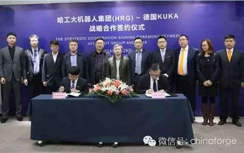 近日,哈工大機器人集團(HRG)與庫卡機器人(上海)有限公司就工業機器人在智能制造和工業4.0中的應用、YOUBOT 機器人開發和培訓項目簽訂合作協議。KUKA中國區CEO孔兵、中國區銷售總監華臻、中國區渠道管理經理龔軼平,KUKA中國區市場部經理邵蔚霞,KUKA中國區教育行業經理孫晶, KUKA東北片區區域經理寧先玥,哈爾濱工業大學校副校長、中國科學院院士韓杰才,哈爾濱市經開區黨工委書記、平房區區委書記于得志,哈爾濱市經開區財政局局長賈玉國,哈爾濱市經開區機器人產業推進辦主任徐樹峰,哈工大機器人集團(HRG)總裁王飛等領導共同出席本次簽約儀式。 庫卡機器人(上海)有限公司是德國庫卡公司設在中國的全資子公司,成立于2000年,是世界上頂級工業機器人制造商之一。公司工業機器人年產量1萬臺,至今已在全球安裝了15萬臺工業機器人。庫卡機器人廣泛應用在儀器儀表、汽車、航天、醫學、塑料等工業。主要應用于材料處理、機床裝料、裝配、包裝、表面修整等領域。 哈工大機器人集團(HRG)由黑龍江省政府、哈爾濱市政府、哈爾濱工業大學共同組建,成立于2014年12月,以市場為導向,成立了智慧工廠、工業機器人、特種機器人、服務機器人、智能云機器人、新興智能裝備、機器人實業開發七個事業部。 哈工大機器人集團副總裁王陽在接受采訪時表示,庫卡機器人是世界頂級的機器人制造商,哈工大機器人集團(HRG)依托的是國內頂級的機器人研究學府哈爾濱工業大學,這次兩方面的合作是一個強強的聯合,庫卡機器人的精度和控制技術是很好的,哈工大機器人集團(HRG)的優勢是在于二次平臺的開發,尤其是在高級參數的應用上,通過我們的開發可以把機器人產品應用的更好,可以說與庫卡的合作對于哈工大機器人集團在機器人市場的拓展上必定會起到推波助瀾的作用。 KUKA-YOUBOT移動機器人平臺是KUKA專門為教育或科研開發的一款移動機器人平臺,非常適合移動機器人的科研與教學應用。今后,雙方將共同開發適用于智慧工廠和智慧物流領域的移動機器人等產品。同時,雙方還將共建KUKA校企合作項目,在高等院校引進德國先進的雙元制教學體系,共建機器人新專業課程和認證體系,在職業教育領域進行推廣。 哈工大機器人集團(HRG)副總裁王陽,集團首席品牌官、市場總監朱磊,工業機器人事業部副總經理張明文等集團領導出席了簽約儀式。 |