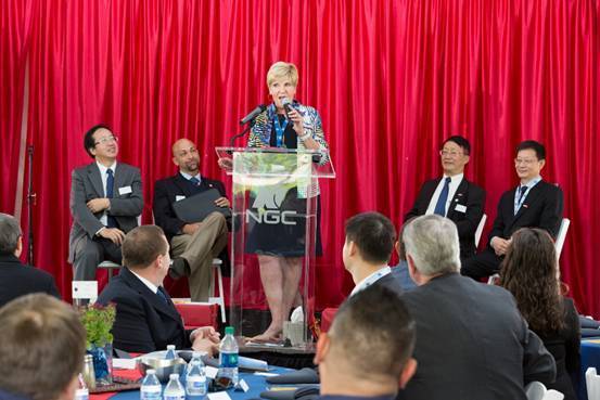 中國高速傳動設備集團有限公司董事局主席兼執行總裁胡曰明致辭 沃斯堡市市長Betsy Price對南高齒齒輪集團進駐沃斯堡市表示歡迎和感謝,她說,“相信南高齒齒輪集團的到來將為沃斯堡創造更多就業的機會和崗位,進一步拉動當地的經濟發展。”