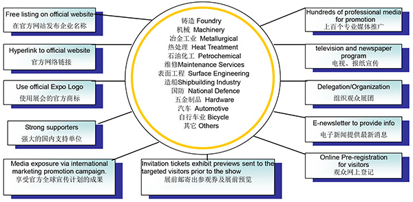 2017中國國際熱處理、工業爐展覽會 The 7th China International Heat Treatment & Industrial Furnace Fair 時間:2017年6月13日-6月15日 地點:上海新國際博覽中心(龍陽路2345號) 主辦單位:中國電工技術學會電熱專業委員會 上海市機械工程學會 上海市新材料協會 上海市機械工程學會熱處理分會會 中國表面工程行業協會 承辦單位:上海賽貿會展有限公司 上海中壹展覽有限公司 國外承辦:勵展華揚國際展覽有限公司 行業協辦:華東地區鑄造協會 上海市汽車行業協會汽車鑄造分會 中國熱處理技術網 中國鋼協硬面技術專業委員會 寧波市熱處理學會 中國鑄造協會耐磨鑄件分會 鳴謝單位:中國熱處理行業協會 中國電器工業協會 中國模具工業協會 中國稀土學會鑄造合金專業委員會 中國冶金礦山企業協會礦山設備分會 中國電子企業協會 中國家用電器協會 中國自行車協會 同期活動concurrent event 2017第十五屆中國國際鑄造博覽會 2017中國國際工業陶瓷展覽會 2017第十七屆中國國際機械裝備展覽會 2017中國國際冶金工業展覽會 展會簡介Introduction “2017上海國際熱處理、工業爐展覽會”(簡稱HT China),HT China以促進國內外熱處理行業間的交流與發展為己任,為中外熱處理工業爐設備與材料企業打造一個促進技術交流、把握市場新機遇的實效平臺,有力推動了中國熱處理工業爐行業的發展。HT China已成為全球熱處理工業爐行業最重要的展事之一。2017年6月展會將啟用上海新國際博覽中心2個展館展出面積20000多平米,全新的包裝與形象,定位高起點服務深層次,突出品牌,演繹時尚,匯聚精品,彰顯品味。歡迎業內人士踴躍參與,共創2017HT China展! 展會影響力Influence Of The Exhibition 展會面積近 20000 平方米 展商數目近 500 家 參展國家及地區數目超 20 個 國家及地區展團:德國、意大利、英國、法國、美國、土耳其、印度、日本、韓國和中國臺灣等 參觀人數預計超過26,000 名專業觀眾,來自 20 多個國家和地區 全球20 多個國家和地區近300家行業合作媒體全面推廣、全程報道,尊享品牌展會的影響力 共有來自57個國家與地區35480人次蒞臨參觀。87%的參展企業及參會代表表示:見到了許多潛在用戶,又了解到了一些本行業先進產品及技術,還與同行進行了廣泛的交流,參加本次展覽及會議超出了預期效果。 廣泛的觀眾宣傳計劃Extensive Promotion Campaign for Visitors
