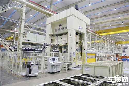 先說沖壓部分,這也是第一個參觀的生產線。沖壓車間總建筑面積達3萬多平方米,由四條大型壓力機生產線組成,承擔大中型沖壓件的生產任務,負責板料的剪切、落料、沖壓成形、原材料存放、毛坯存放、沖模存放、檢具存放、沖壓件檢測、返修、轉運、以及機模修、模具小修及維護、廢料處理等工作。