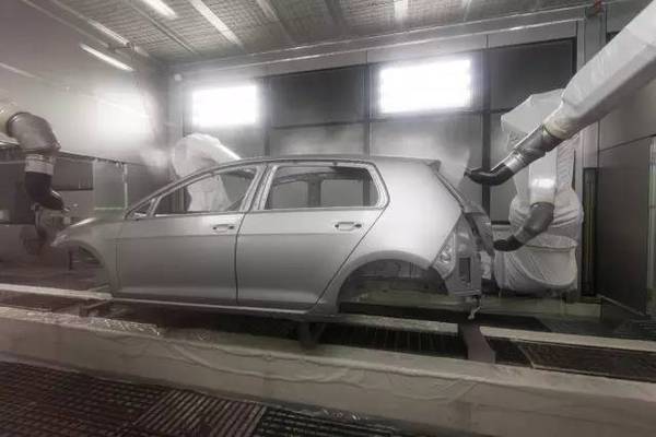 和沖壓車間一樣,大量的一體化焊鉗、自動焊接機器人等自動化設備,同樣保障了焊裝環節的高效率和高品質。 最為神秘的涂裝車間 之所以說涂裝車間最為神秘,是因為一汽-大眾所有的工廠的涂裝車間基本都實現了100%的自動化,整個生產流程都是依靠機器人完成。