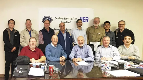終驗收簽字儀式 美國福特汽車隨即發(fā)來感謝信,對濟(jì)南二機(jī)床項目團(tuán)隊按期完成北美工廠第七條沖壓生產(chǎn)線表示感謝。