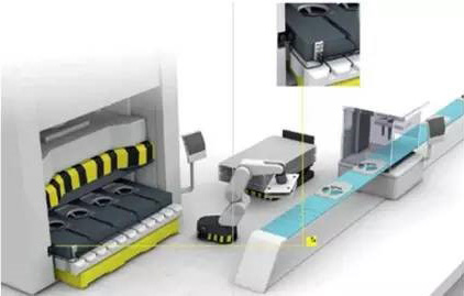 模具旁的傳感器檢測物料的對齊情況,通過BIC電感式耦合器可靠傳輸傳感器的定位信號。使用BIC能自動更換抓具,無需手動進行機械式接插件的連接。利用BNI網絡接口還能識別抓具。
