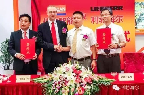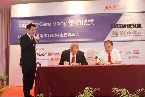 利勃海爾與金石機器人簽訂戰略合作協議 在AMTS 2016展會次日,利勃海爾又與偉本智能在展會現場簽訂了戰略合作協議,攜手共同推動智能制造發展。