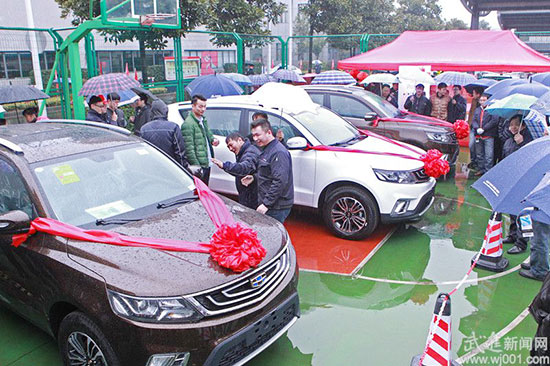 年初七,江蘇龍城精鍛有限公司一派喜氣洋洋。員工們個個熱情高漲,新年抽獎活動正在公司籃球場舉行。 “由于企業(yè)訂單充足,2016年會抽獎活動未能如期舉行。選擇節(jié)后上班第一天進行抽獎,既是為了感謝員工對企業(yè)發(fā)展做出的貢獻,也希望新的一年里,大家能繼續(xù)開拓創(chuàng)新、戰(zhàn)勝困難,不斷書寫新輝煌。”公司副總經(jīng)理王玲說。 據(jù)了解,此次龍城精鍛專門拿出60多萬元籌備這場活動,獎品不僅有平板電腦、蘋果手機,還有3輛吉利遠景SUV汽車。隨著主持人宣布活動開始,公司高層人員依次抽出各類獎項。看著抽獎顯示屏上不斷跳動的名字,現(xiàn)場歡笑聲此起彼伏。